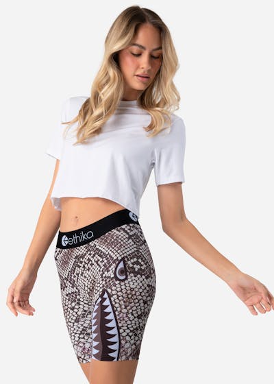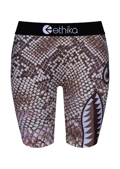 Slipping into Ethika’s Bomber Python Goddess Biker Short is like donning a piece of street art. The bomber python print is a bold statement, an instant elevation of street chic that turns heads and sparks conversation. It’s not just a pair of shorts; it’s a fashion piece that adds an edge to casual wear, ensuring you stand out in the urban jungle.